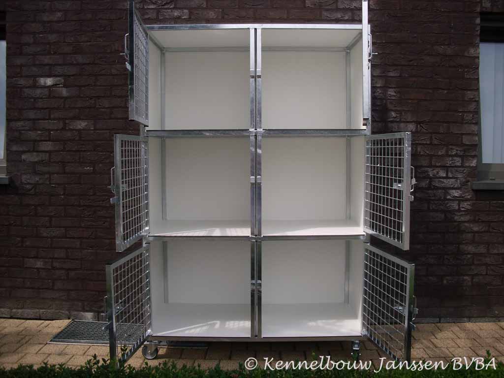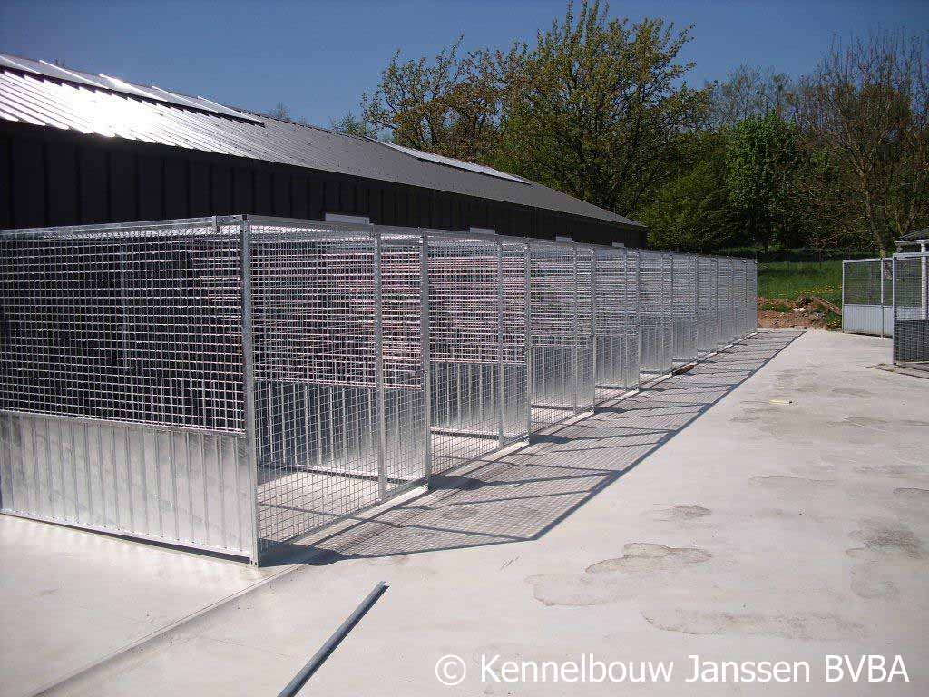 Kennel- en Metaalbouw Janssen BVBA is een familiebedrijf met meer dan 30 jaar ervaring in het ontwerp en de constructie van kennels en andere metaalconstructies. Wij staan garant voor kwaliteit van onze producten. U kan bij ons terecht voor het ontwerpen van uw kennels en hondenhokken maar ook voor kennelpanelen, puppyrennen, vlonders, kattenrennen, volières en andere toebehoren. Hieronder ziet u een aantal voorbeelden van onze kennels, hondenhokken, puppyrennen, kattenunits, volières, vlonder en schuiven. Klik op een foto om te vergroten en op de vergrote foto om te bladeren door de fotoreeks